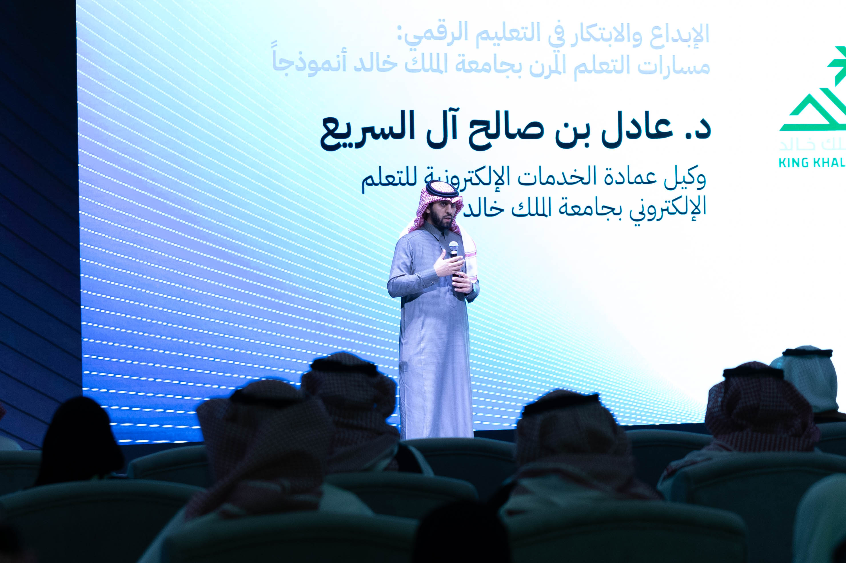 مجموعة صور تعكس عدد من المتحدثين أمام مجموعة من الحضور، ضمن لقاء الابداع والابتكار في التعليم الرقمي في مقر المركز.