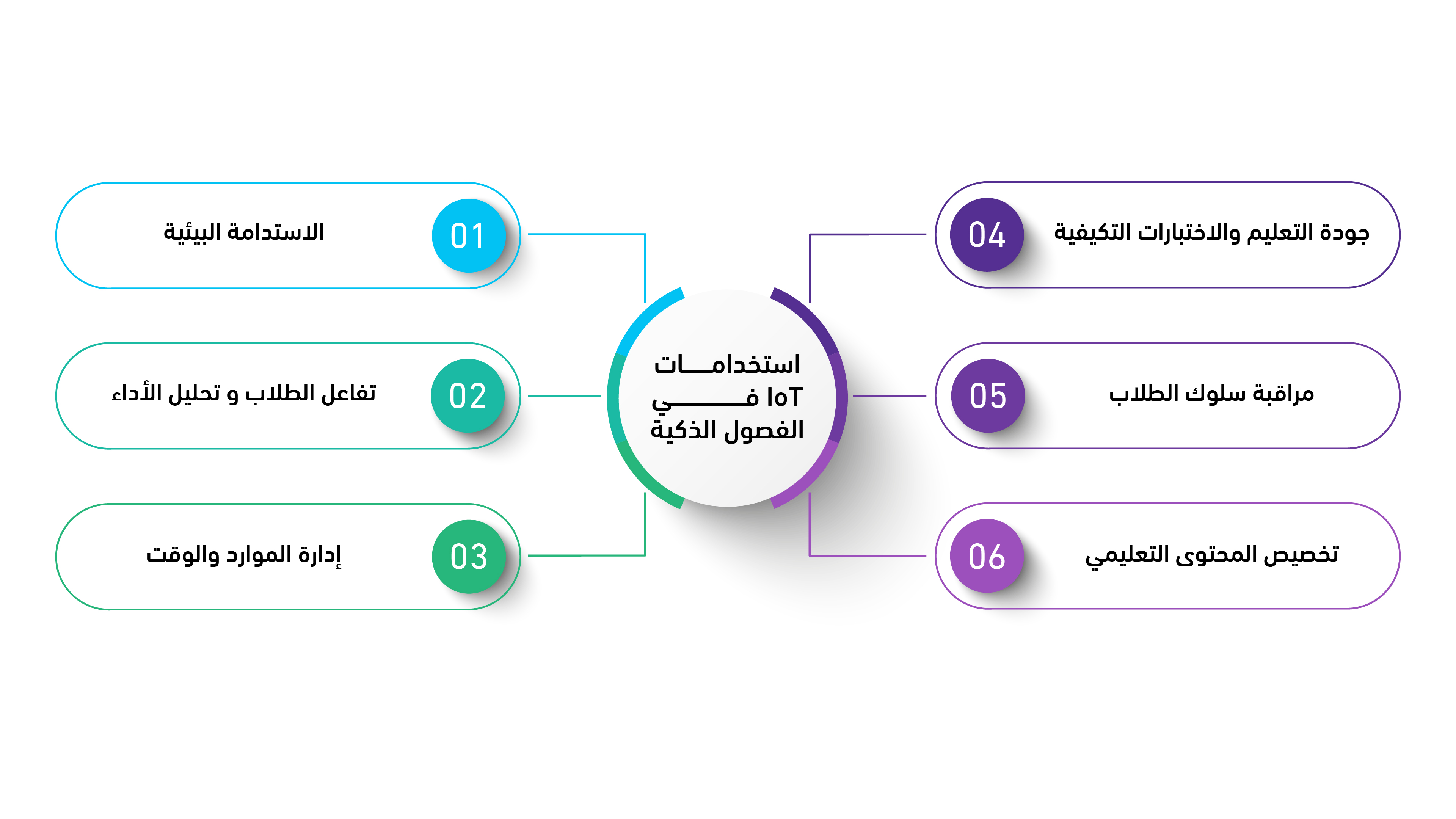 من خلال دمج أجهزة IoT داخل الفصل، يمكن تحقيق استخدامات متعددة، منها: